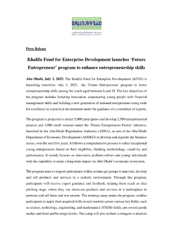 Abu Dhabi, July 3, 2025: The Khalifa Fund for Enterprise Development (KFED) is