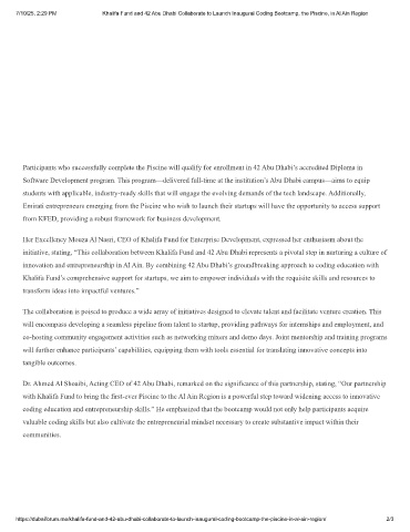 7/10/25, 2:29 PM Khalifa Fund and 42 Abu Dhabi Collaborate to Launch Inaugural Coding Bootcamp, the Piscine, in Al Ain Region