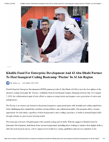 7/10/25, 2:29 PM Khalifa Fund for Enterprise Development and 42 Abu Dhabi partner to host inaugural coding bootcamp ‘Piscine’ in Al Ain Region | …