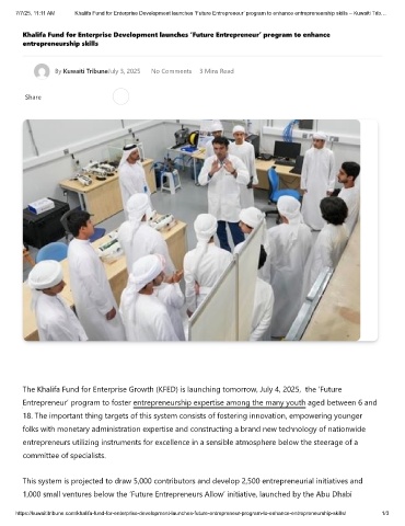 7/7/25, 11:11 AM Khalifa Fund for Enterprise Development launches ‘Future Entrepreneur’ program to enhance entrepreneurship skills – Kuwaiti Trib…