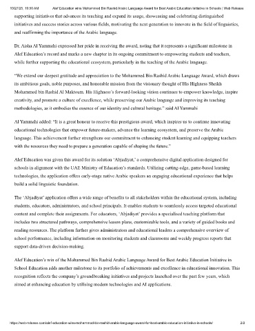 10/27/25, 10:50 AM Alef Education wins Mohammed Bin Rashid Arabic Language Award for Best Arabic Education Initiative in Schools | Web Release