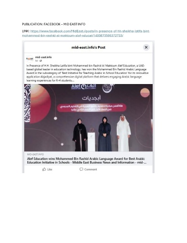 PUBLICATION: FACEBOOK – MID EAST INFO LINK: https://www.facebook.com/MidEast.i/posts/in-presence-of-hh-sheikha-latifa-bint- mohammed-bin-rashid-al-maktoum-alef-educat/1400873595372733/