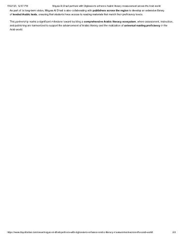 10/27/25, 12:07 PM Miqyas Al Dhad partners with Diglossia to enhance Arabic literacy measurement across the Arab world
