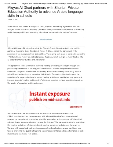 https://mid-east.info/miqyas-al-dhad-partners-with-sharjah-private-education-authority-to-advance-arabic-language-skills-in-schools/ 1/2