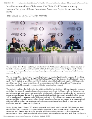 10/8/25, 12:49 PM In collaboration with Alef Education, Abu Dhabi Civil Defence Authority launches 2nd phase of Bader Educational Awareness Proje…