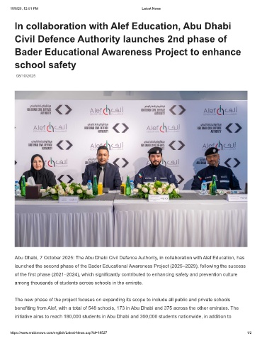Abu Dhabi, 7 October 2025: The Abu Dhabi Civil Defence Authority, in collaboration with Alef Education, has