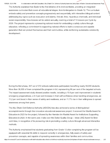 10/8/25, 12:51 PM In collaboration with Alef Education, Abu Dhabi Civil Defence Authority launches 2nd phase of Bader Educational Awareness Proje…