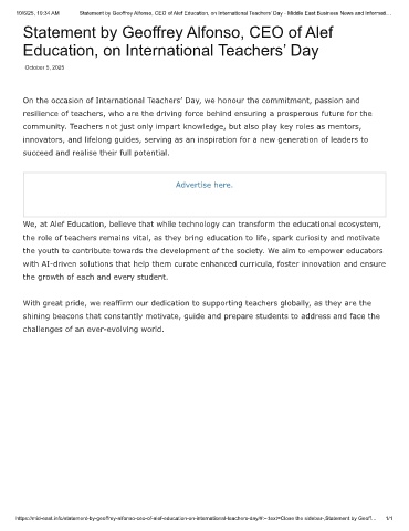 10/6/25, 10:34 AM Statement by Geoffrey Alfonso, CEO of Alef Education, on International Teachers’ Day - Middle East Business News and Informati…
