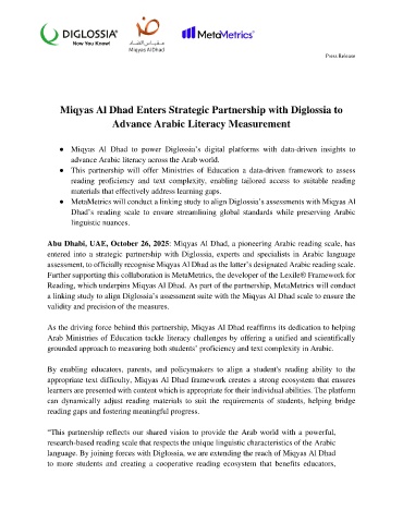 Reading, which underpins Miqyas Al Dhad. As part of the partnership, MetaMetrics will conduct
