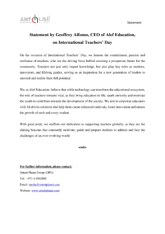 Statement by Geoffrey Alfonso, CEO of Alef Education,