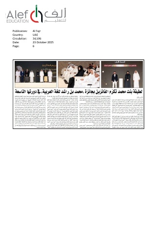 Publication: Al Fajr Country: UAE Circulation: 34,596 Date: 23 October 2025 Page: 6