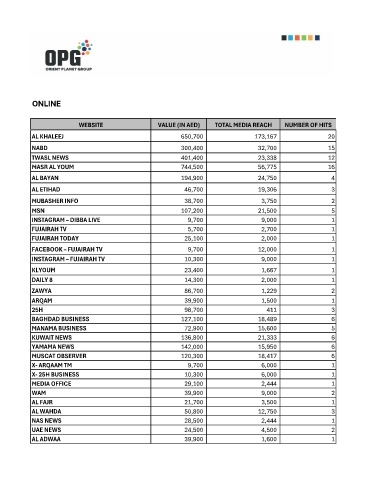 WEBSITE VALUE (IN AED) TOTAL MEDIA REACH NUMBER OF HITS