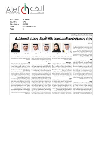 Publication: Al Bayan Country: UAE Circulation: 88,000 Date: 05 October 2025 Page: 5