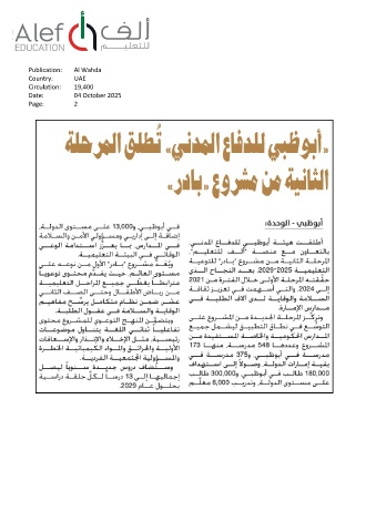 Publication: Al Wahda Country: UAE Circulation: 19,400 Date: 04 October 2025 Page: 2