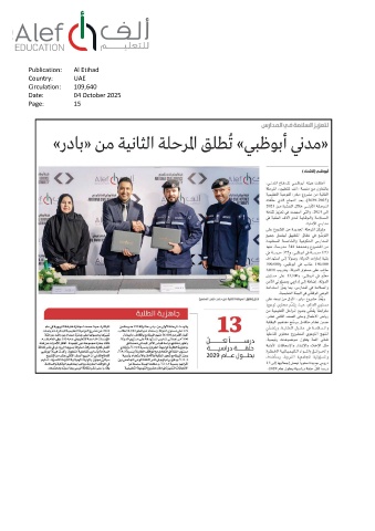 Publication: Al Etihad Country: UAE Circulation: 109,640 Date: 04 October 2025 Page: 15