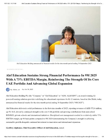 10/31/25, 11:37 AM Alef Education Sustains Strong Financial Performance in 9M 2025 with a 73% EBITDA Margin, Reinforcing the Strength of its Co…