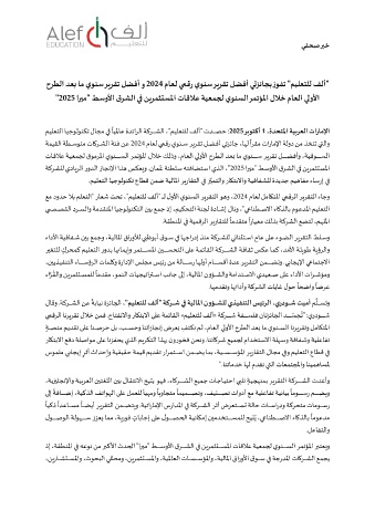 ﻢﻴﻠﻌﺘﻟا ﺎﻴﺟﻮﻟﻮﻨﻜﺗ لﺎﺠﻣ �� ﺎﻴﳌﺎﻋ ةﺪﺋاﺮﻟا ﺔﻛﺮــــــــﺸﻟا ،"ﻢﻴﻠﻌﺘﻠﻟ ﻒﻟأ" تﺪــــــــﺼﺣ : 2025 ﺮ�ﻮﺘﻛأ ، 1 ةﺪﺤﺘﳌا ﺔﻴ�ﺮﻌﻟا تارﺎﻣﻹا