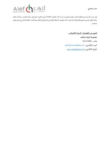 رﻮﻄﺘﻳ ﻢﻟﺎﻋ �� حﺎﺠﻨﻠﻟ ﺔﺒﻠﻄﻟا داﺪﻋﻹ ﺎﻴﻌﺳ ﻢﻠﻌﺘﻟا �� ةاوﺎﺴﳌاو زﺎﺠﻧﻹاو ﺔﻛرﺎﺸﳌا "ﻢﻴﻠﻌﺘﻠﻟ ﻒﻟأ" زﺰﻌ� ﺎﻤﻛ .ﺔﺒﻠﻄﻟا ﻢﻠﻌ� ﺞﺋﺎﺘﻧ ن�ﺴﺤﺘﻟ ��ﺛﺄﺘﻟا ﺔﻴﻟﺎﻋ