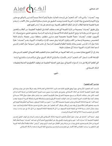 �� ةﺪﺋارو ﺰﺋاﻮﺟ ��ﻋ ةﺰﺋﺎﺣ ﺔﻛﺮﺷ ﺪﻌ�و ، 2016 مﺎﻌﻟا �� ( ALEFEDT ﺰﻣﺮﻟا ﺖﺤﺗ ﺔﻴﻟﺎﳌا قاروﻸﻟ ي�ﻇﻮﺑأ قﻮﺳ �� ﺔﺟرﺪﳌا) "ﻢﻴﻠﻌﺘﻠﻟ ﻒﻟأ" ﺖﺴﺳﺄﺗ