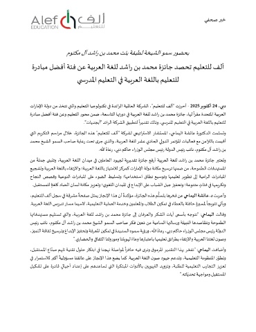 تارﺎﻣﻹا ﺔﻟود ﻦﻣ ﺬﺨﺘﺗ ي�ﻟاو ﻢﻴﻠﻌﺘﻟا ﺎﻴﺟﻮﻟﻮﻨﻜﺗ �� ةﺪﺋاﺮﻟا ﺔﻴﳌﺎﻌﻟا ﺔﻛﺮﺸﻟا ،"ﻢﻴﻠﻌﺘﻠﻟ ﻒﻟأ" تزﺮﺣأ - 2025 ﺮ�ﻮﺘﻛأ 24 ،ﻲ�د