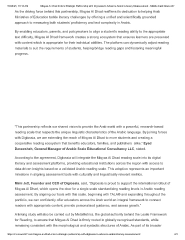 10/28/25, 10:13 AM Miqyas Al Dhad Enters Strategic Partnership with Diglossia to Advance Arabic Literacy Measurement - Middle East News 247