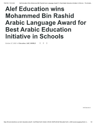 https://theemiratestimes.com/alef-education-wins/#:~:text=Dubai%2C October 24%2C 2025%3A Alef Education%2C a UAE-based,engaging Arabic la… 1/4
