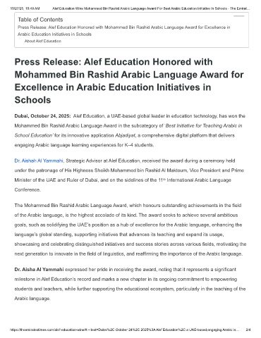 10/27/25, 10:49 AM Alef Education Wins Mohammed Bin Rashid Arabic Language Award For Best Arabic Education Initiative In Schools - The Emirat…
