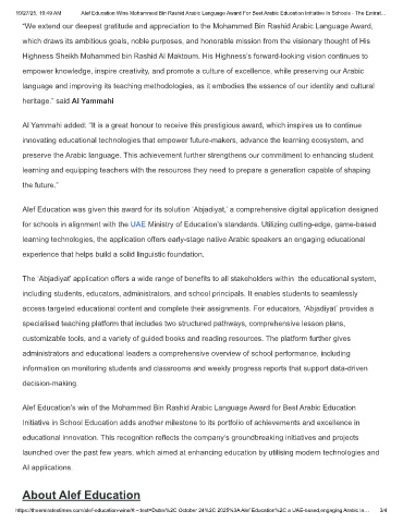 10/27/25, 10:49 AM Alef Education Wins Mohammed Bin Rashid Arabic Language Award For Best Arabic Education Initiative In Schools - The Emirat…