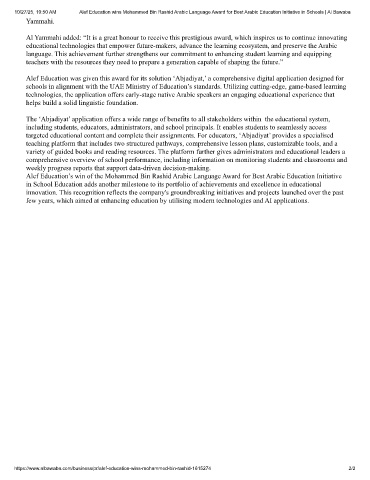 10/27/25, 10:50 AM Alef Education wins Mohammed Bin Rashid Arabic Language Award for Best Arabic Education Initiative in Schools | Al Bawaba