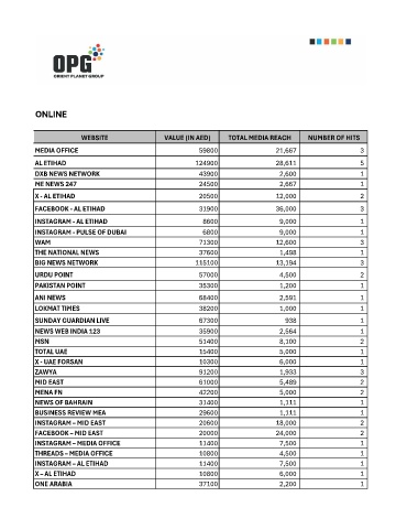 WEBSITE VALUE (IN AED) TOTAL MEDIA REACH NUMBER OF HITS