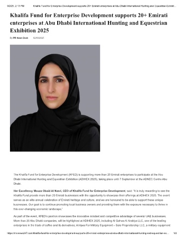 9/2/25, 2:13 PM Khalifa Fund for Enterprise Development supports 20+ Emirati enterprises at Abu Dhabi International Hunting and Equestrian Exhibit…