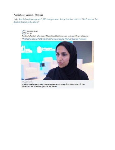 Publication: Facebook – Al Etihad Link: Khalifa Fund to empower 1,000 entrepreneurs during first six months of 'The Emirates: The Startup Capital of the World'