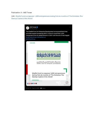 Publication: X – UAE Forsan Link: Khalifa Fund to empower 1,000 entrepreneurs during first six months of 'The Emirates: The Startup Capital of the World'