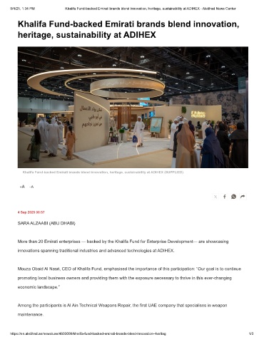 9/4/25, 1:34 PM Khalifa Fund-backed Emirati brands blend innovation, heritage, sustainability at ADIHEX - Aletihad News Center