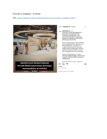 Publication: Instagram – Al Etihad Link: Instagram: Khalifa Fund-backed Emirati brands blend innovation, heritage, sustainability at ADIHEX