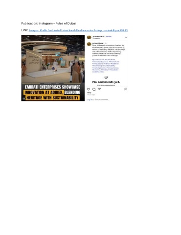 Publication: Instagram – Pulse of Dubai Link: Instagram: Khalifa Fund-backed Emirati brands blend innovation, heritage, sustainability at ADIHEX