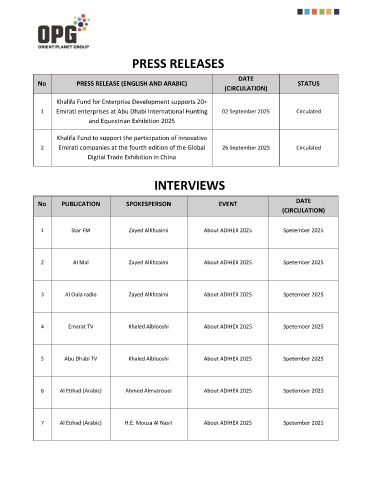 No. PRESS RELEASE (ENGLISH AND ARABIC) DATE STATUS
