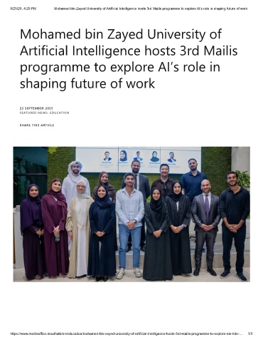 9/25/25, 4:29 PM Mohamed bin Zayed University of Artificial Intelligence hosts 3rd Mailis programme to explore AI’s role in shaping future of work