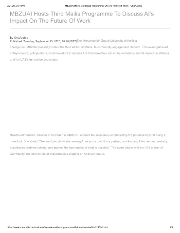 9/24/25, 3:31 PM MBZUAI Hosts 3rd Mailis Programme On AI's Future In Work - OneArabia