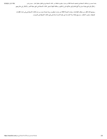 9/30/25, 2:57 PM رﺑوﺷ يدوﻌﺳ - لﻣﻌﻟا لﺑﻘﺗﺳﻣ لﯾﻛﺷﺗ ﻲﻓ ﻲﻋﺎﻧطﺻﻻا ءﺎﻛذﻟا رود ﺔﺷﻗﺎﻧﻣﻟ «سﻠْﯾ َ ﻣ» ةردﺎﺑﻣ نﻣ ﺔﺛﻟﺎﺛﻟا ﺔﺧﺳﻧﻟا فﯾﺿﺗﺳﺗ ﻲﻋﺎﻧطﺻﻻا ءﺎﻛذﻠﻟ دﯾاز نﺑ دﻣﺣﻣ ﺔﻌﻣﺎﺟ