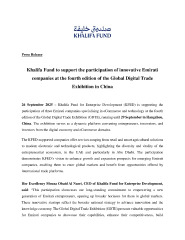 26 September 2025 – Khalifa Fund for Enterprise Development (KFED) is supporting the