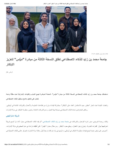 ةدﺣاو ﺔّﻠظﻣ تﺣﺗ ﺔﯾﺗارﺎﻣﻹا تادﺎﯾﻘﻟاو بﺎﺑﺷﻟا ﻊﻣﺟﻟ ةرﺷﺎﺑﻣﻟا ﺔّﺻﻧﻣﻟا ،"سﻠْﯾَﻣ" ةردﺎﺑﻣ نﻣ ﺔﺛﻟﺎﺛﻟا ﺔﺧﺳﻧﻟا ﻲﻋﺎﻧطﺻﻻا ءﺎﻛذﻠﻟ دﯾاز نﺑ دﻣﺣﻣ ﺔﻌﻣﺎﺟ تﻓﺎﺿﺗﺳا