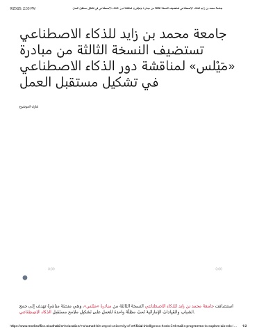 9/25/25, 2:53 PM لﻣﻌﻟا لﺑﻘﺗﺳﻣ لﯾﻛﺷﺗ ﻲﻓ ﻲﻋﺎﻧطﺻﻻا ءﺎﻛذﻟا رود ﺔﺷﻗﺎﻧﻣﻟ «سﻠْﯾ َ ﻣ» ةردﺎﺑﻣ نﻣ ﺔﺛﻟﺎﺛﻟا ﺔﺧﺳﻧﻟا فﯾﺿﺗﺳﺗ ﻲﻋﺎﻧطﺻﻻا ءﺎﻛذﻠﻟ دﯾاز نﺑ دﻣﺣﻣ ﺔﻌﻣﺎﺟ