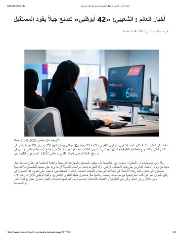 9/25/25, 2:56 PM لﺑﻘﺗﺳﻣﻟا دوﻘﯾ ًﻼﯾﺟ ﻊﻧﺻﺗ «ﻲﺑظوﺑأ 42» :ﻲﺑﯾﻌﺷﻟا : مﻟﺎﻌﻟا رﺎﺑﺧأ