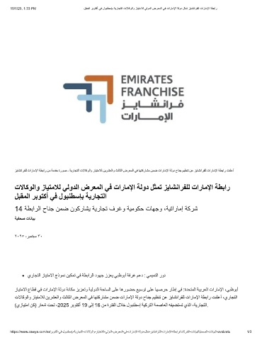 10/1/25, 1:33 PM لﺑﻘﻣﻟا رﺑوﺗﻛأ ﻲﻓ لوﺑﻧطﺳﺈﺑ ﺔﯾرﺎﺟﺗﻟا تﻻﺎﻛوﻟاو زﺎﯾﺗﻣﻼﻟ ﻲﻟودﻟا ضرﻌﻣﻟا ﻲﻓ تارﺎﻣﻹا ﺔﻟود لﺛﻣﺗ زﯾﺎﺷﻧارﻔﻠﻟ تارﺎﻣﻹا ﺔطﺑار