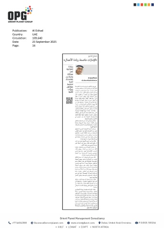 Publication: Al Etihad Country: UAE Circulation: 109,640 Date: 23 September 2025 Page: 16