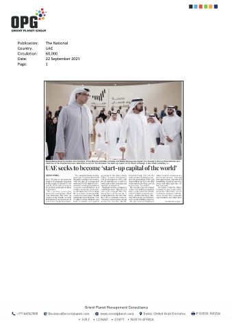 Publication: The National Country: UAE Circulation: 60,000 Date: 22 September 2025 Page: 1