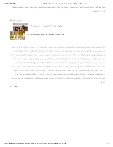 9/2/25, 11:47 AM «رﺎﺑﺧﻸﻟ دﺎﺣﺗﻻا - «ﺔﯾﺳورﻔﻟاو دﯾﺻﻠﻟ ﻲﺑظوﺑأ» ﻲﻓ لﺎﻣﻋﻷا ةدﺎﯾر ﺔﻓﺎﻘﺛ ﺦّﺳرﯾ «ﺔﻔﯾﻠﺧ قودﻧﺻ