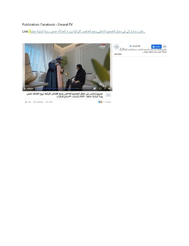 Publication: Facebook – Emarat TV Link: ةيلحم ةيبابش ةيؤر نمض ،ةثادحلا حورب ةيثارتلا رصانعلا جمدي يلخادلا ميمصتلا لاجم يف يتارامإ عورشم..