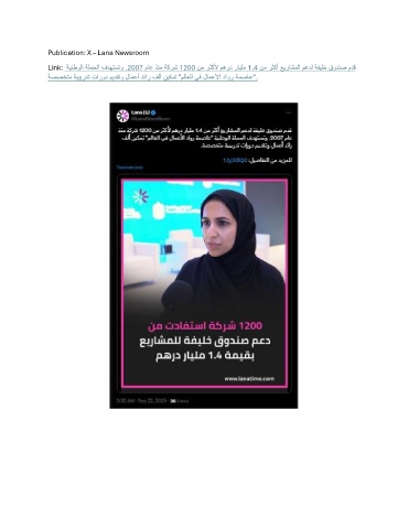 Publication: X – Lana Newsroom Link: ةينطولا ةلمحلا فدهتستو .2007 ماع ذنم ةكرش 1200 نم رثكلأ مهرد رايلم 1.4 نم رثكأ عيراشملا معدل ةفيلخ قودنص مدق ةصصختم ةيبيردت تارود ميدقتو لامعأ دئار فلأ نيكمت "ملاعلا يف لامعلأا داور ةمصاع".